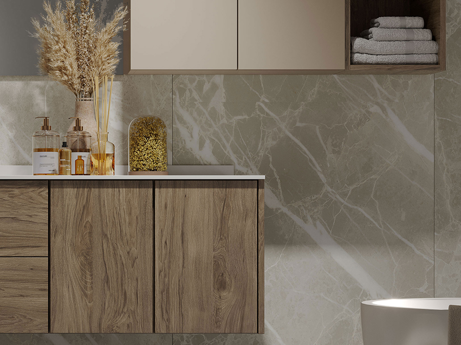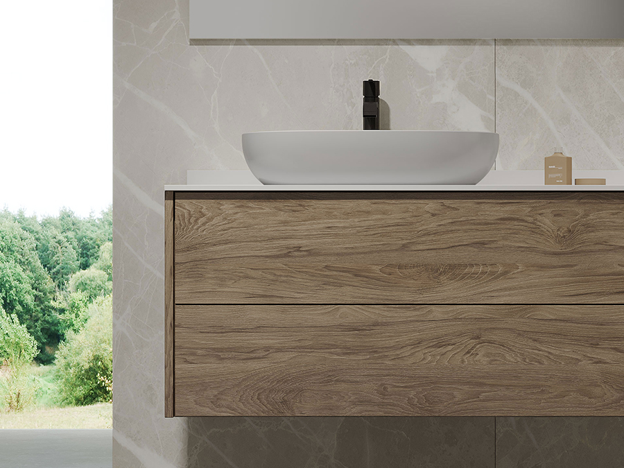 Madera lacada, laminados texturizados, encimeras porcelánicas o lavabos en solid surface: tú eliges, nosotros lo hacemos realidad.